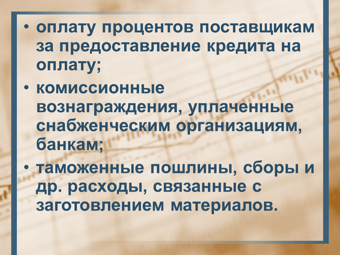 оплату процентов поставщикам за предоставление кредита на оплату;