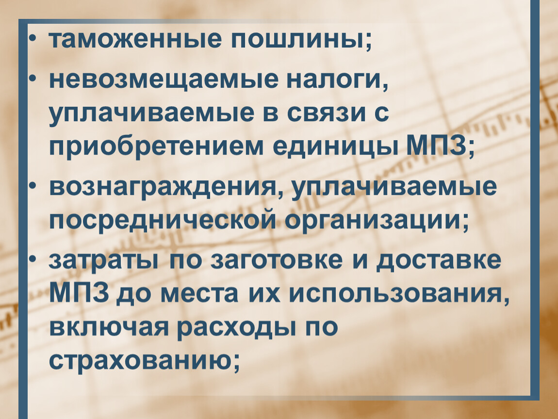 таможенные пошлины, сборы и др. расходы, связанные с заготовлением материалов.