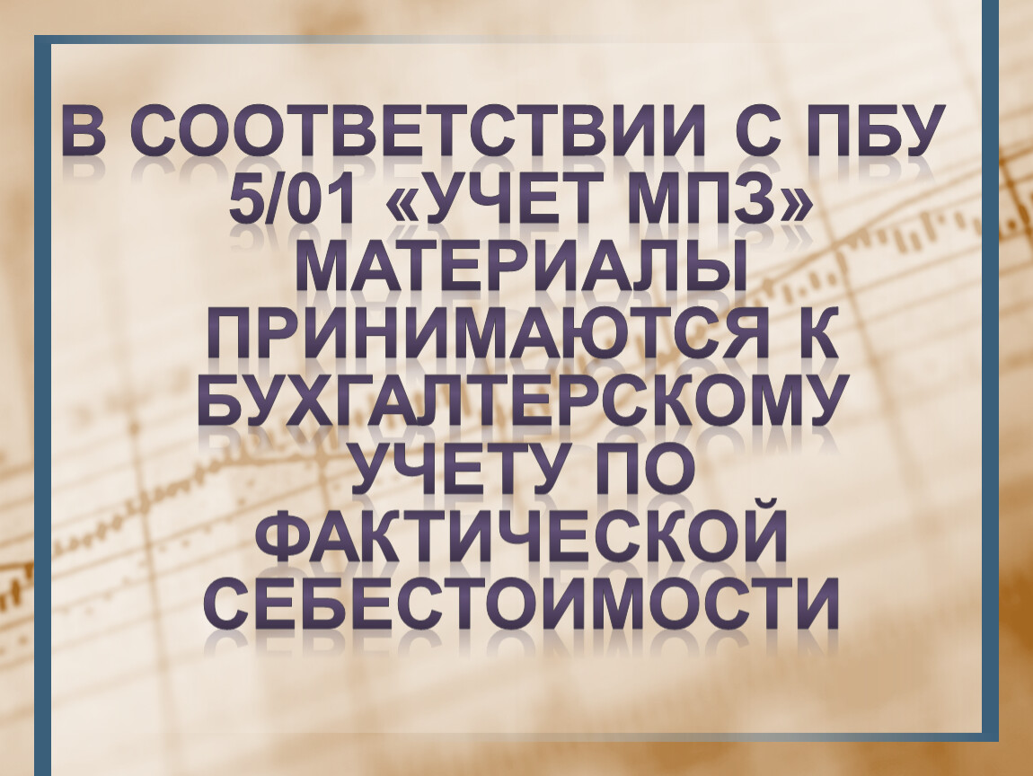В соответствии с ПБУ 5/01 «Учет МПЗ» материалы принимаются к бухгалтерскому учету по фактической себестоимости