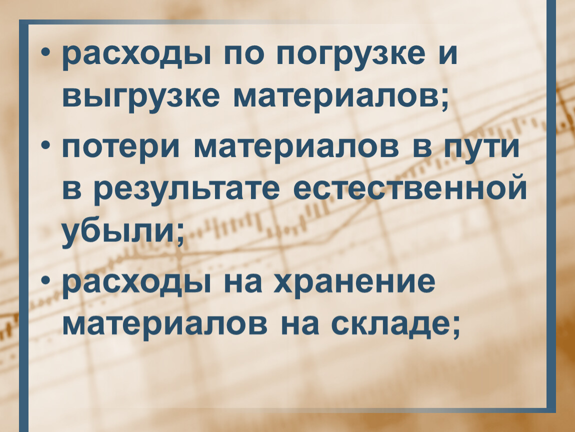 Затраты по заготовке и доставке МПЗ (транспортно-заготовительные расходы) включают: