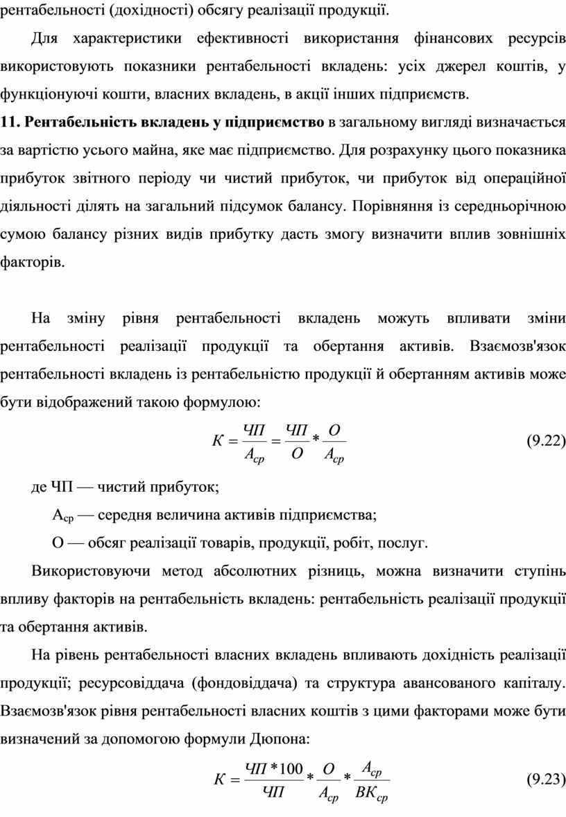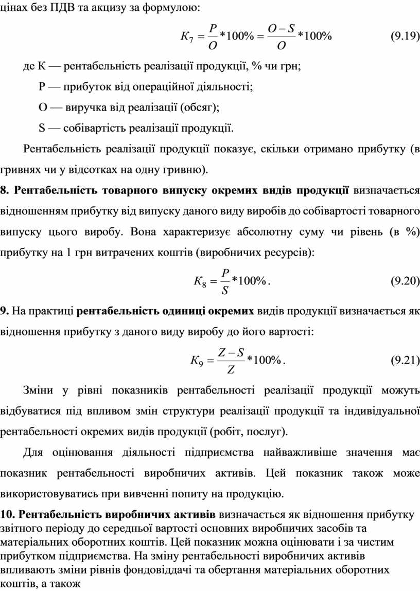 9. На практиці рентабельність одиниці окремих видів продукції визначається як відношення прибутку з даного виду виробу до його вартості: