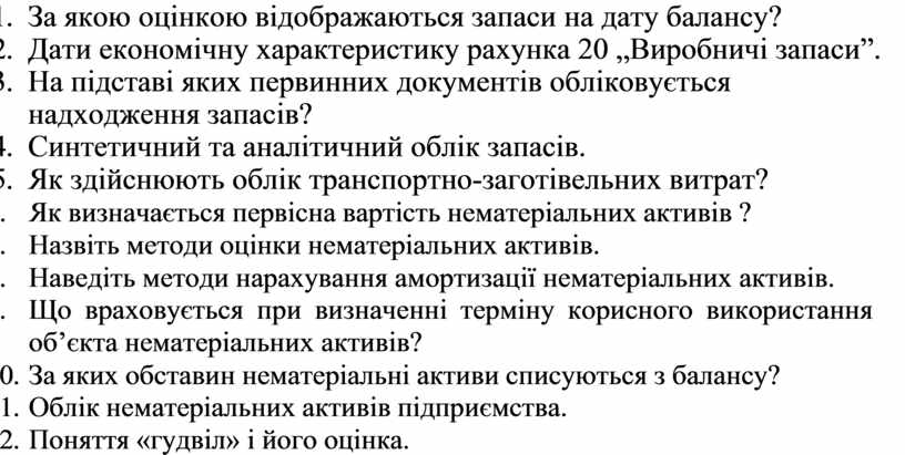 ТЕМА 9: ОБЛІК ВИРОБНИЧИХ ЗАПАСІВ