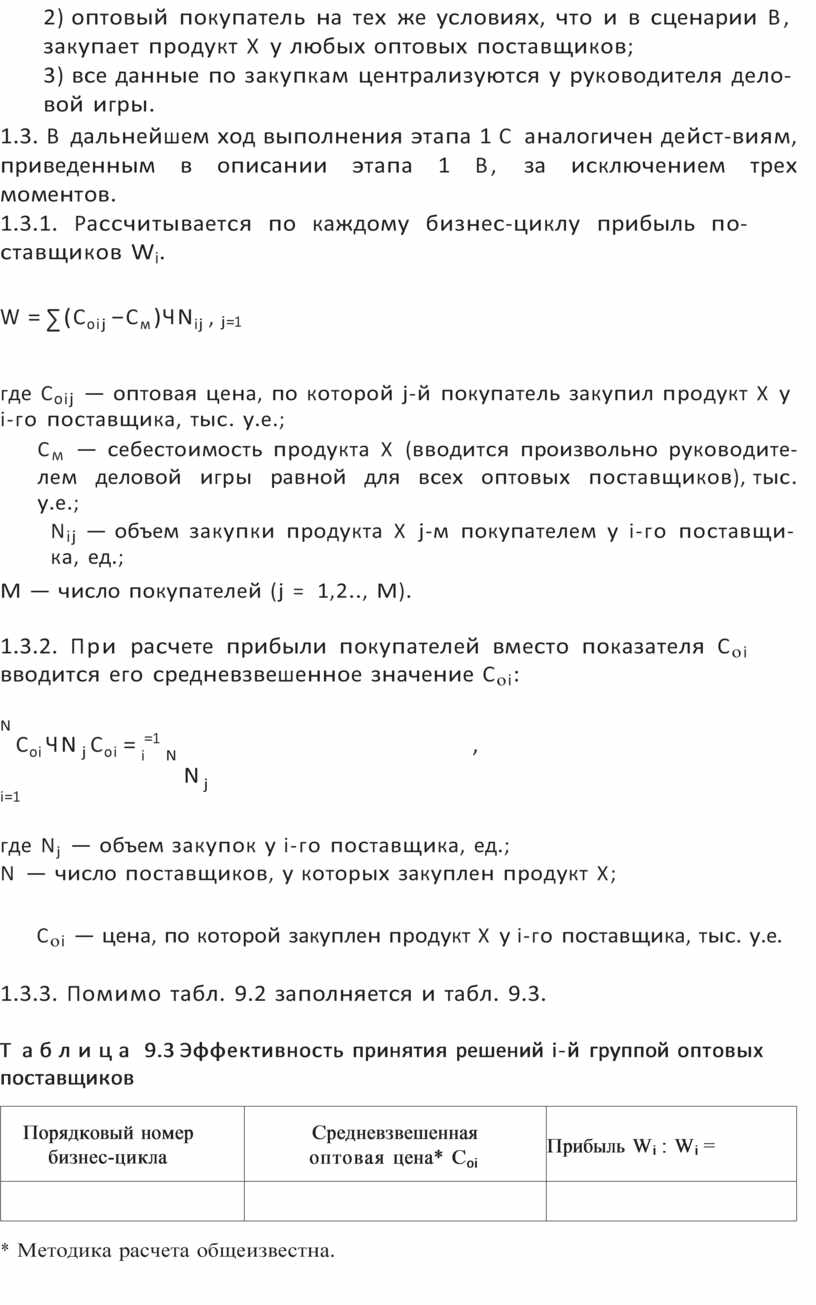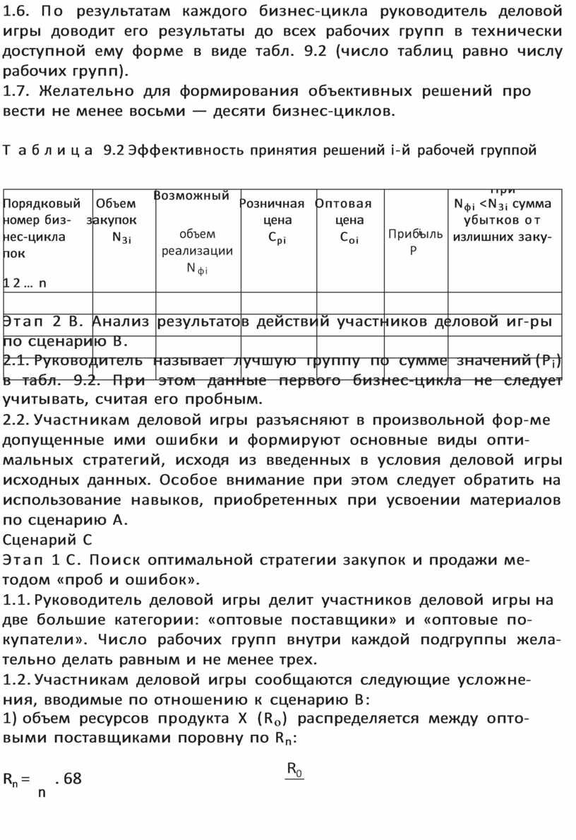 1.6. По результатам каждого бизнес-цикла руководитель деловой игры доводит его результаты до всех рабочих групп в технически доступной ему форме в виде табл. 9.2 (число таблиц равно числу