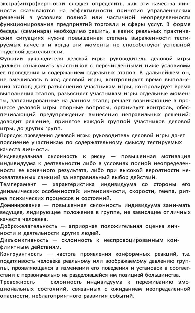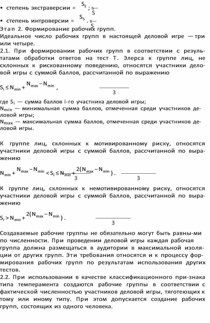 Условия проведения деловой игры: участники деловой игры разби-ваются на рабочие группы численностью от трех до пяти человек. Принцип формирования рабочих групп может быть любым, начи-ная от произвольного и кончая применением методов психодиагно-стики, содержание которых уже изложено в других заданиях на-стоящего пособия.