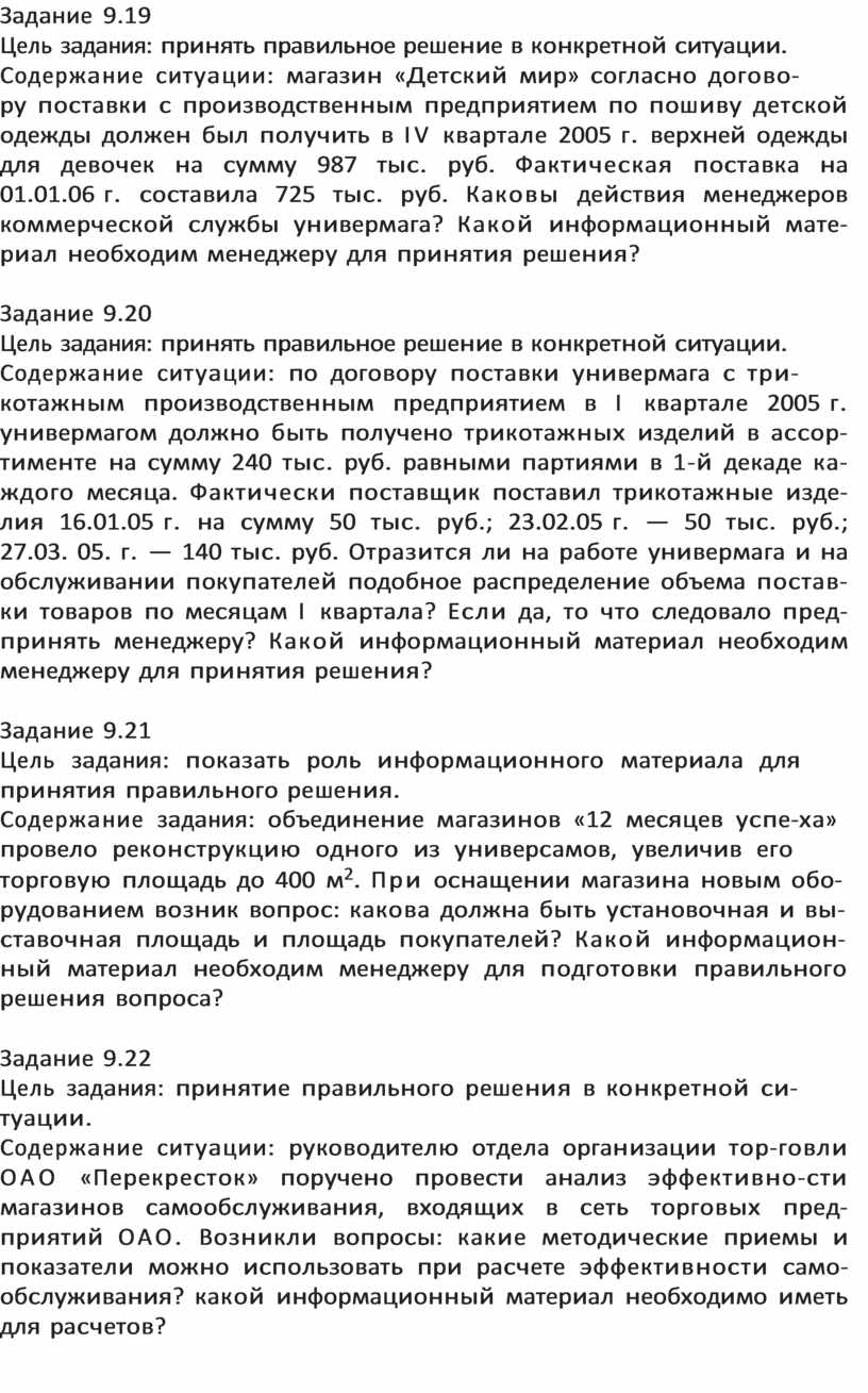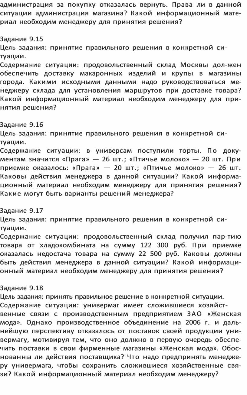 Цель задания: принять правильное решение в конкретной ситуации. Содержание ситуации: универмаг имеет сложившиеся хозяйст-
