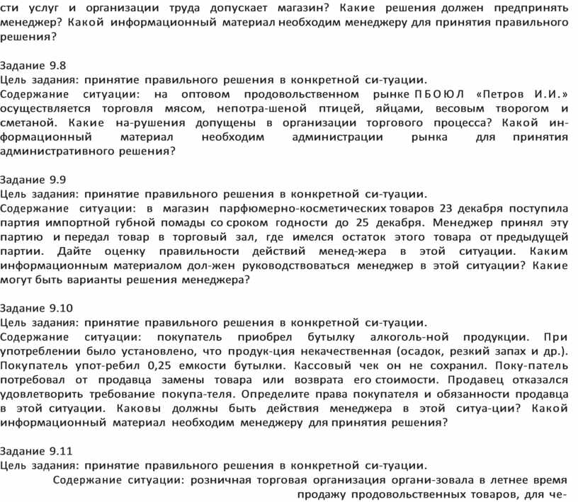 сти услуг и организации труда допускает магазин? Какие решения должен предпринять менеджер? Какой информационный материал необходим менеджеру для принятия правильного решения?