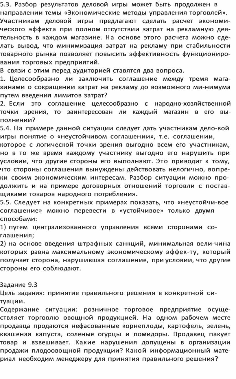 5.3. Разбор результатов деловой игры может быть продолжен в направлении темы «Экономические методы управления торговлей».