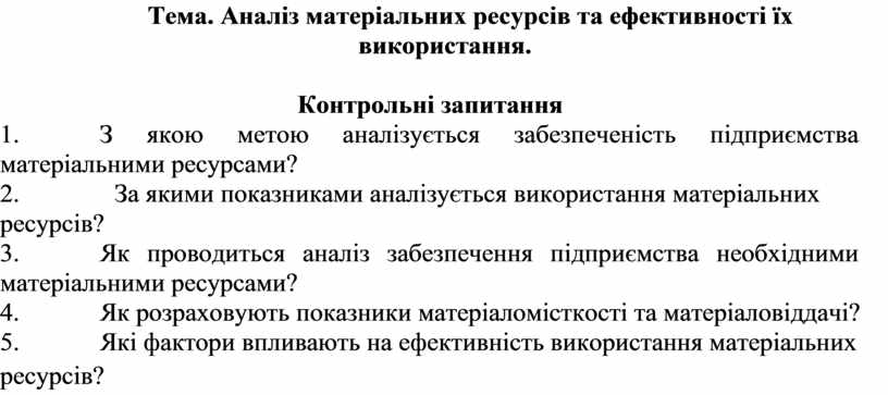 Тема. Аналіз матеріальних ресурсів та ефективності їх
