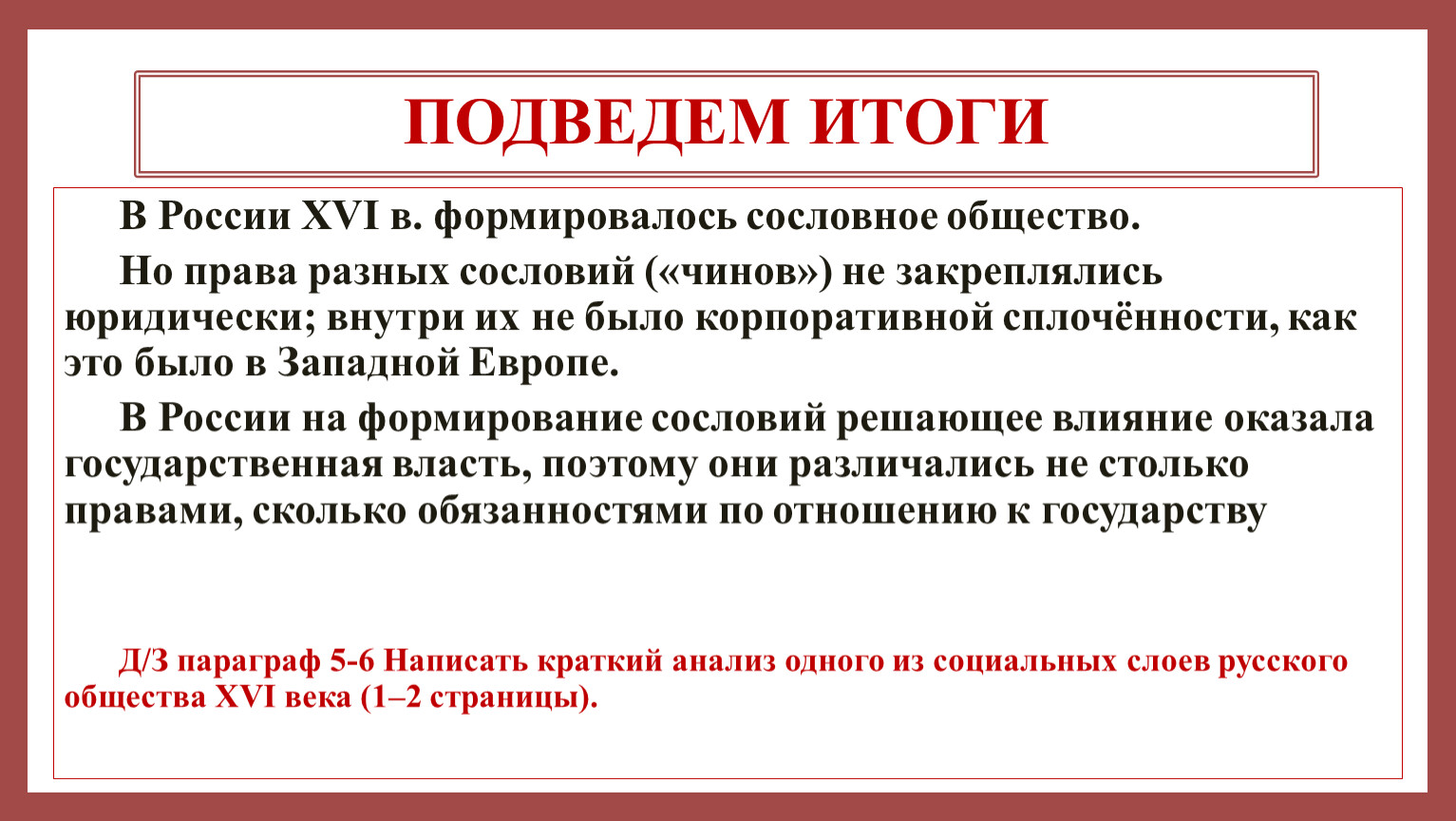 Д/З параграф 5-6 Написать краткий анализ одного из социальных слоев русского общества XVI века (1–2 страницы).