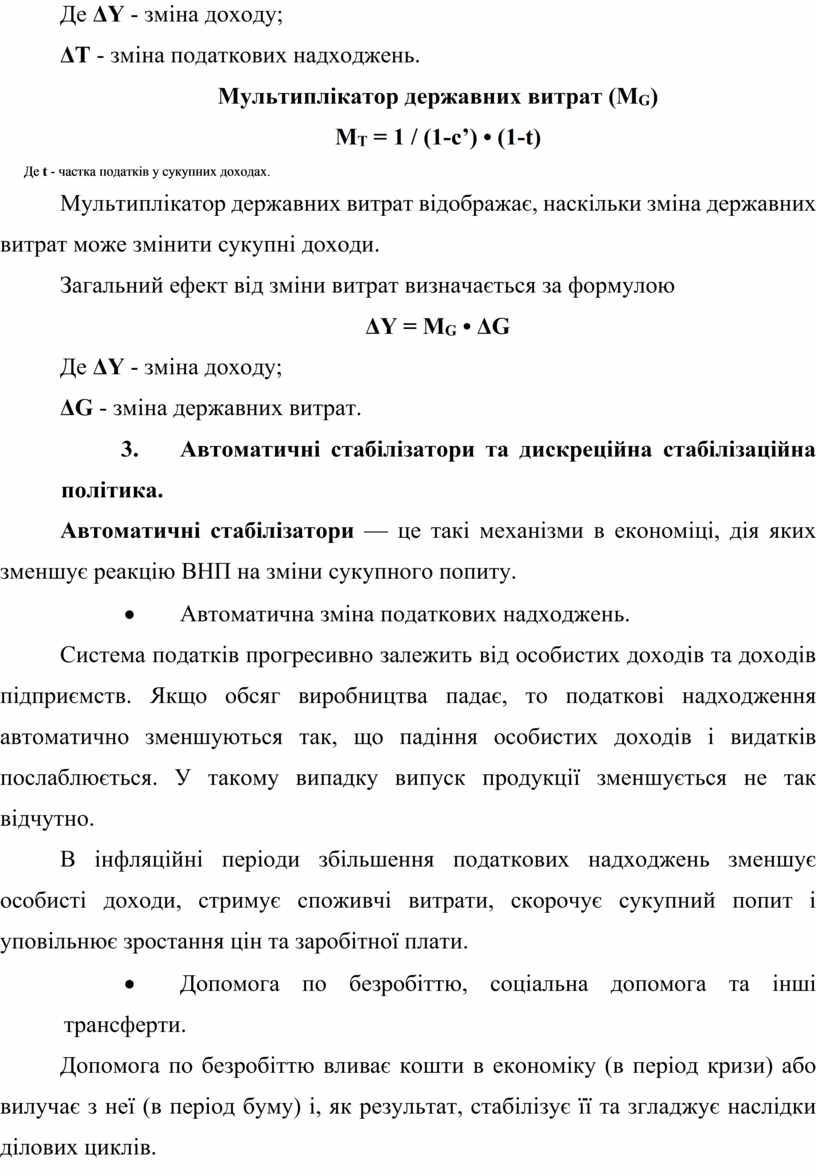 3. Автоматичні стабілізатори та дискреційна стабілізаційна політика.
