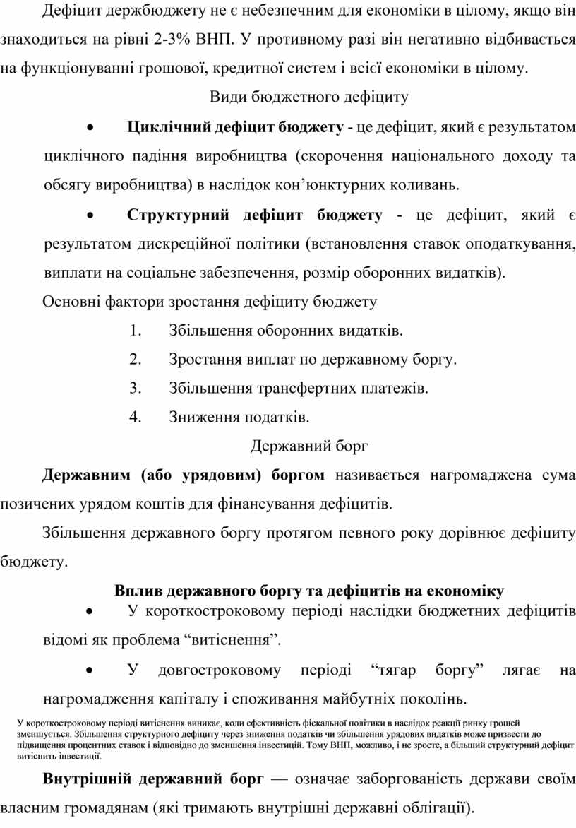 · У короткостроковому періоді наслідки бюджетних дефіцитів відомі як проблема “витіснення”.