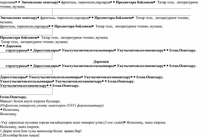 Iэтап.Оештыру. Максат: белем алуга әзерлек булдыру. (Рефлексив универсаль укыту гамәлләрен (УУГ) формалаштыру)