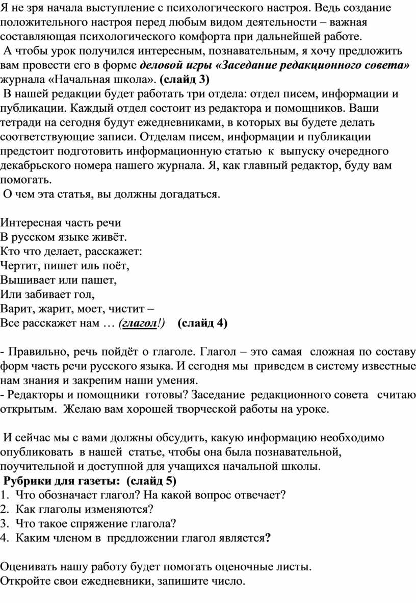 - Редакторы и помощники готовы? Заседание редакционного совета считаю открытым. Желаю вам хорошей творческой работы на уроке.