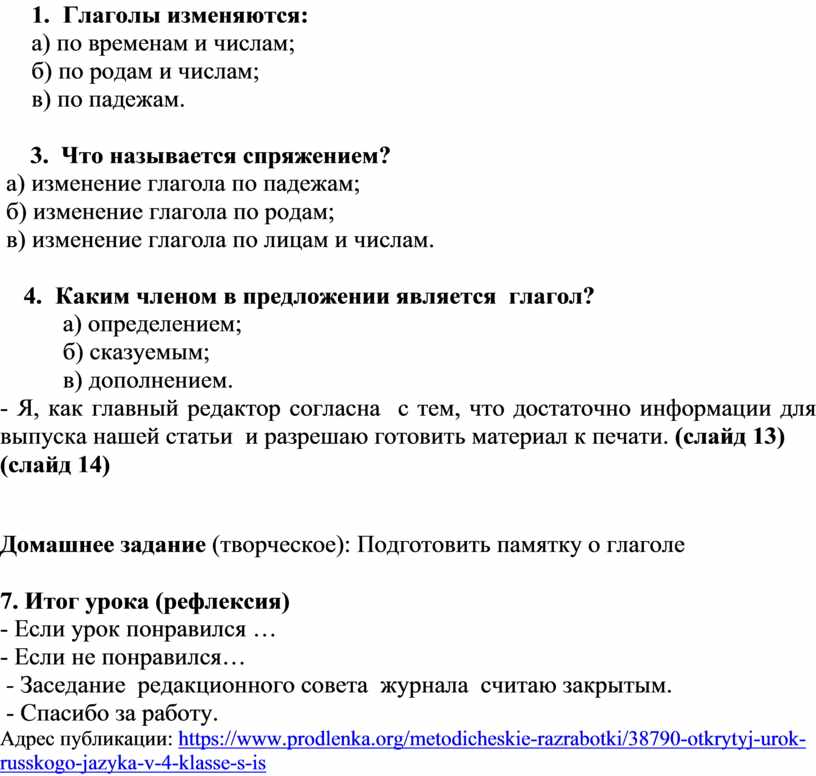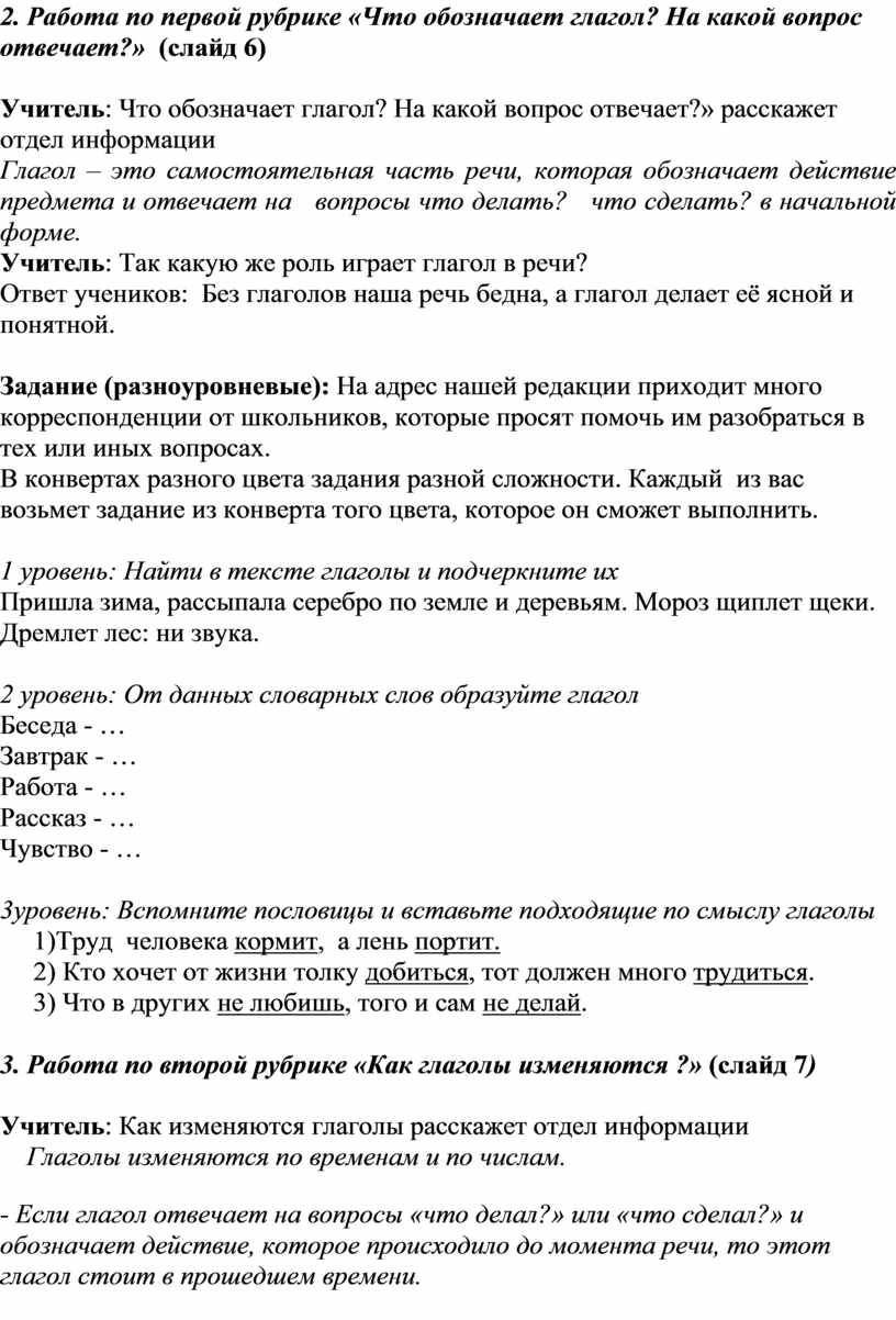 Учитель: Что обозначает глагол? На какой вопрос отвечает?» расскажет отдел информации