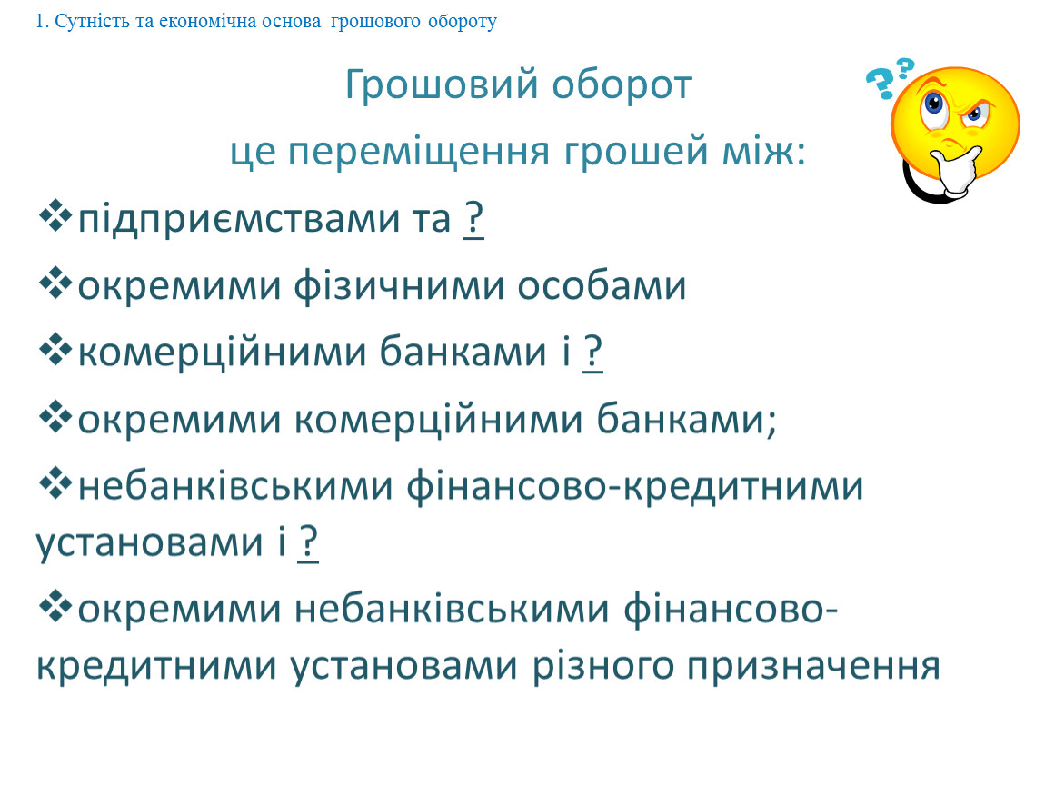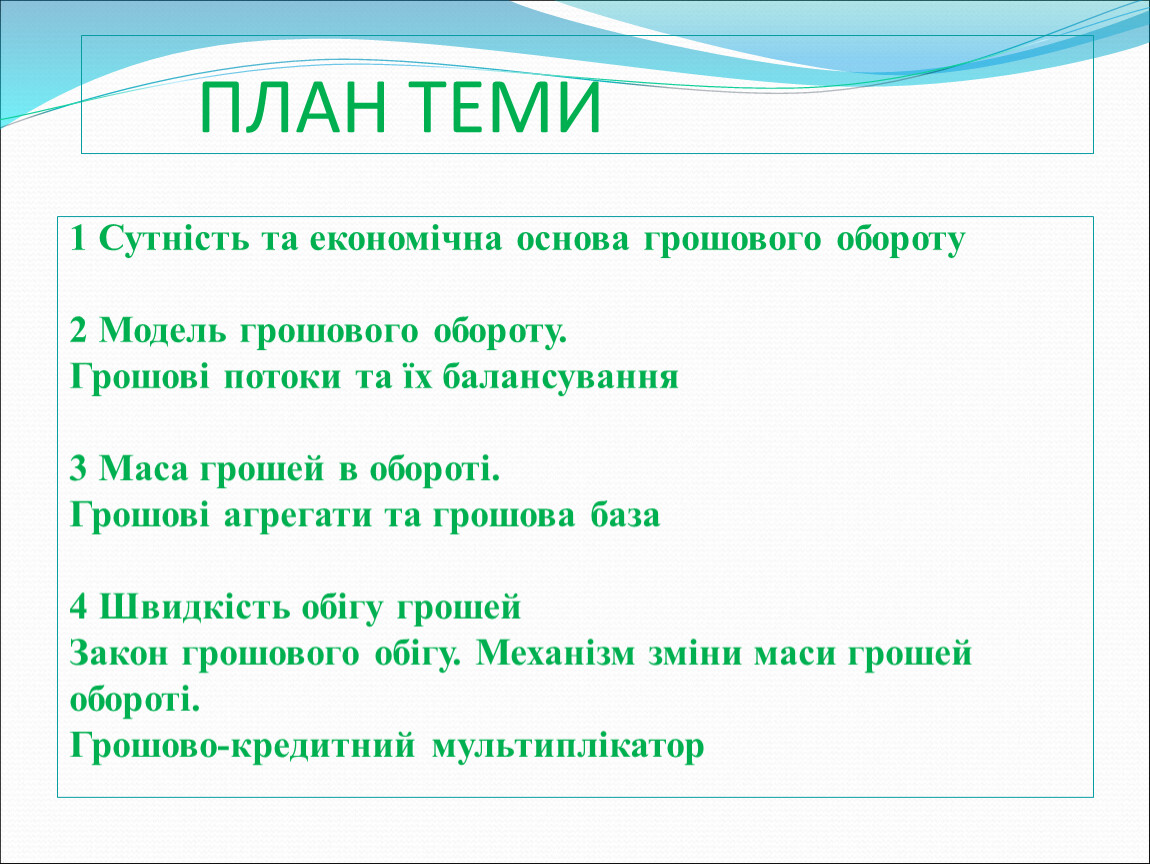 Тема: ГРОШОВИЙ ОБОРОТ І ГРОШОВА МАСА, ЩО ЙОГО ОБСЛУГОВУЄ