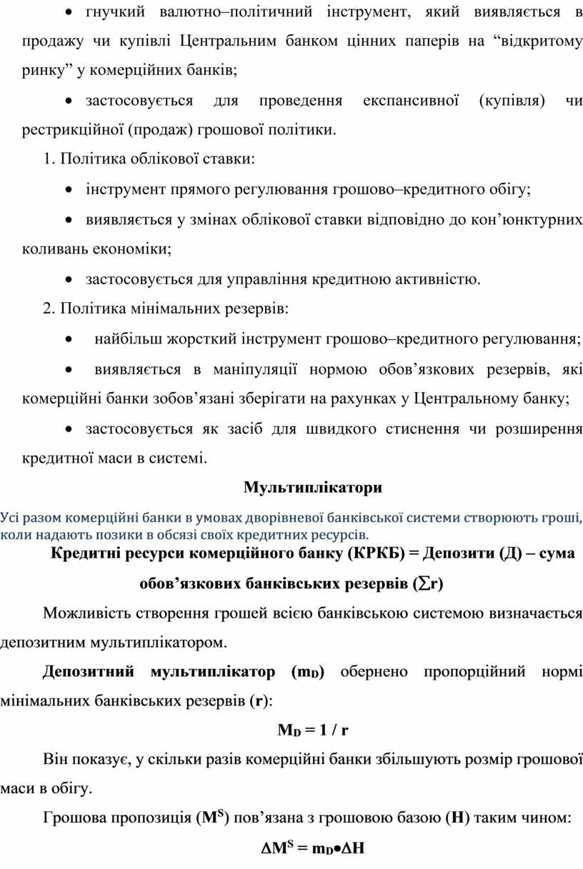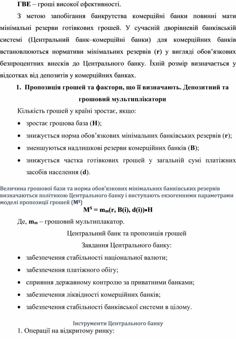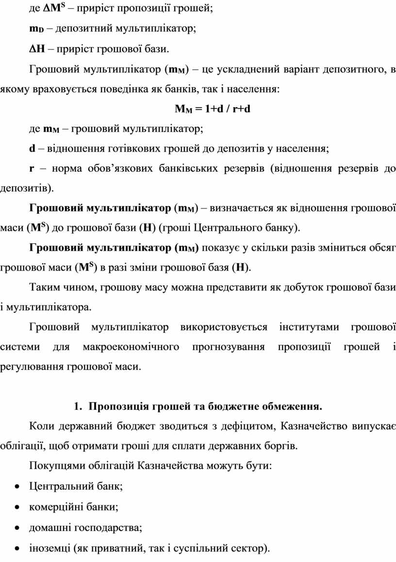 2. Пропозиція грошей та фактори, що її визначають. Депозитний та грошовий мультиплікатори