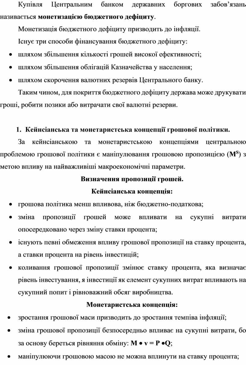4. Кейнсіанська та монетаристська концепції грошової політики.
