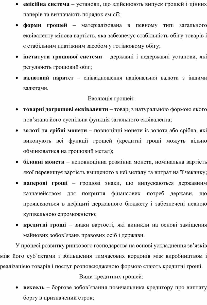 · кредитні гроші – знаки вартості, які виникли на основі заміщення майнових зобов’язань правових осіб і держави.