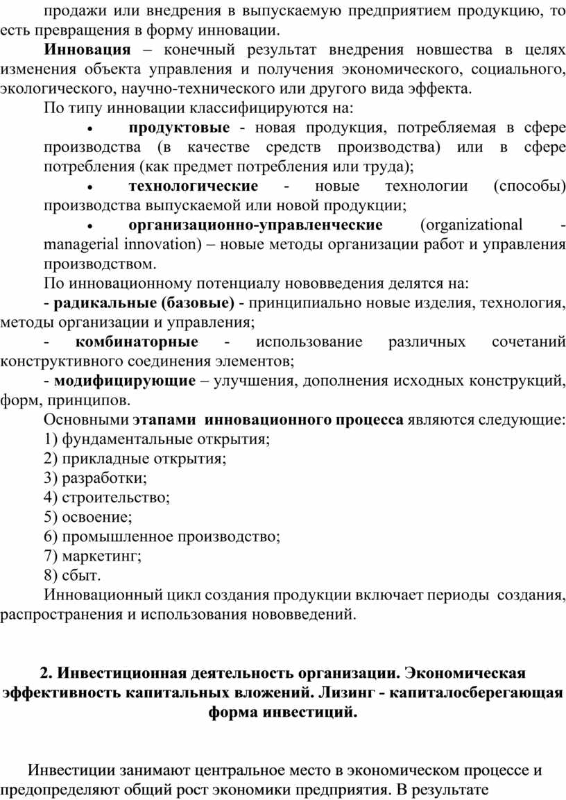 2. Инвестиционная деятельность организации. Экономическая эффективность капитальных вложений. Лизинг - капиталосберегающая форма инвестиций.