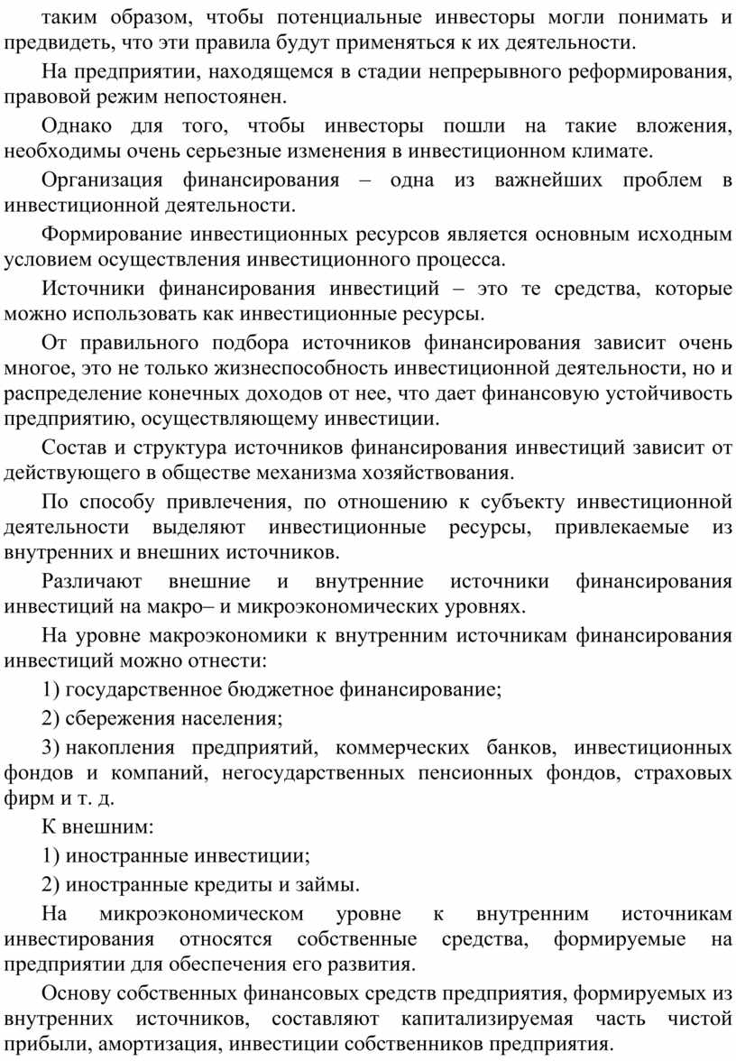 Состав и структура источников финансирования инвестиций зависит от действующего в обществе механизма хозяйствования.