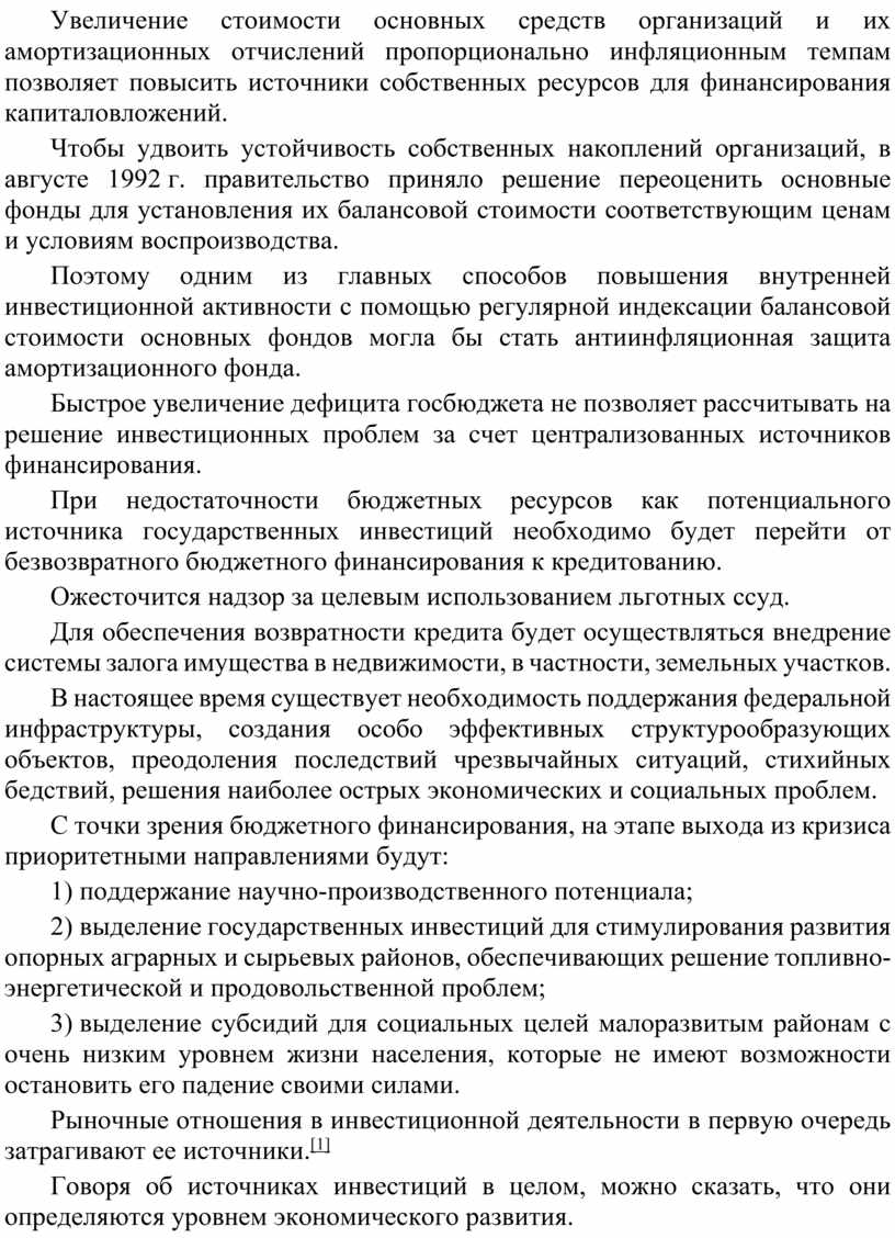 Инфляционный рост обесценил собственные средства организаций, полученные за счет амортизационных отчислений, и этот источник капиталовложений фактически девальвировал.