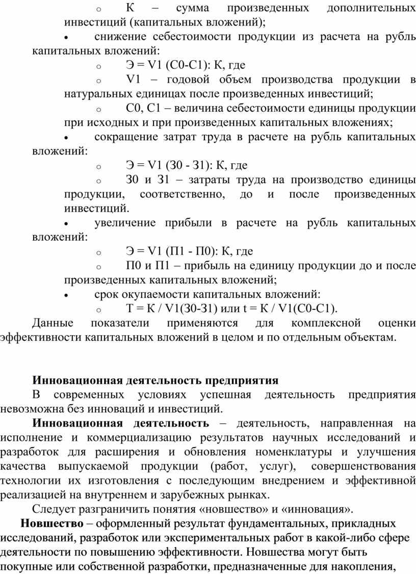 1. Капитальные вложения и их эффективность Инновационная деятельность организации.