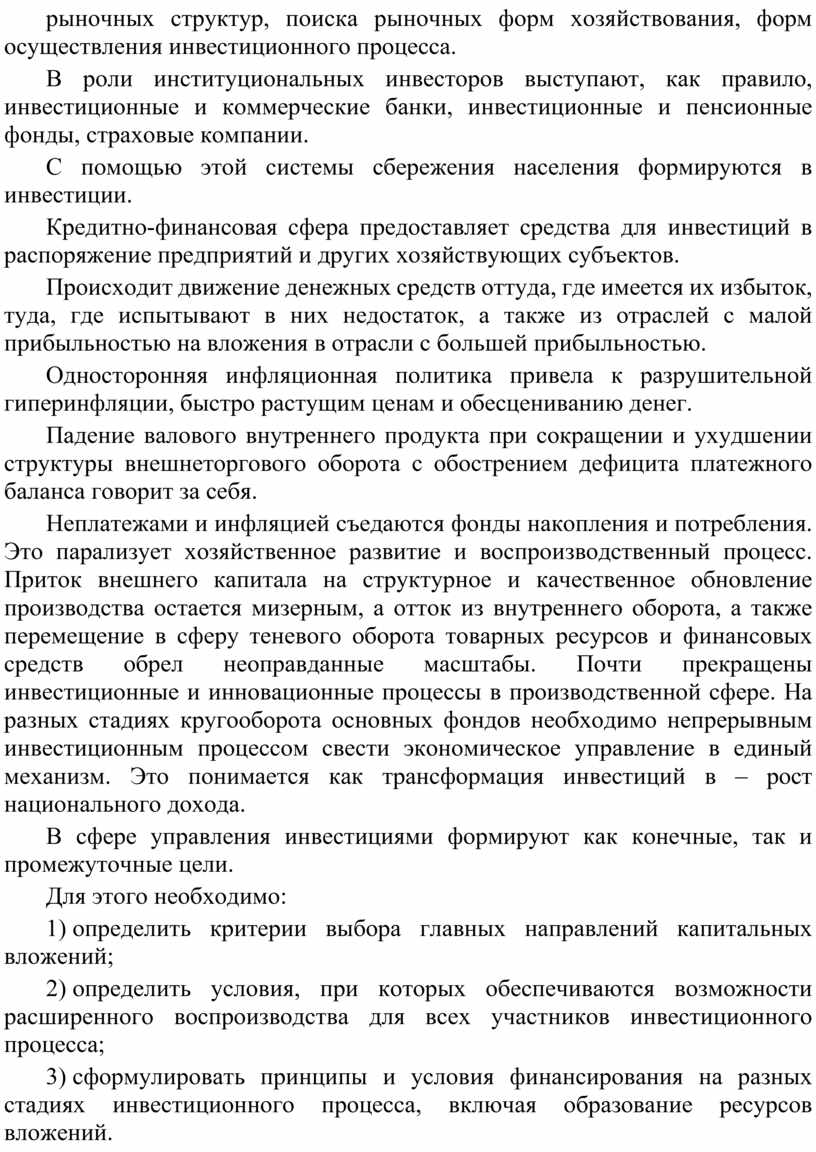 3) сформулировать принципы и условия финансирования на разных стадиях инвестиционного процесса, включая образование ресурсов вложений.