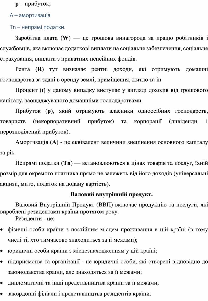 Розподіл: вимірювання ВНП за сумою доходів (метод потоку витрат) |