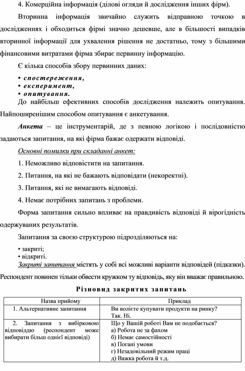 Анкета – це інструментарій, де з певною логікою і послідовністю задаються запитання, на які фірма бажає одержати відповіді.
