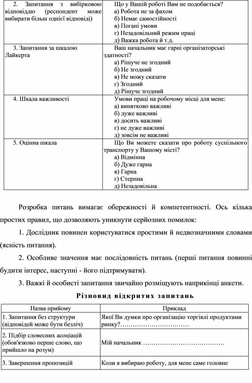 3. Важкі й особисті запитання звичайно розміщують наприкінці анкети.