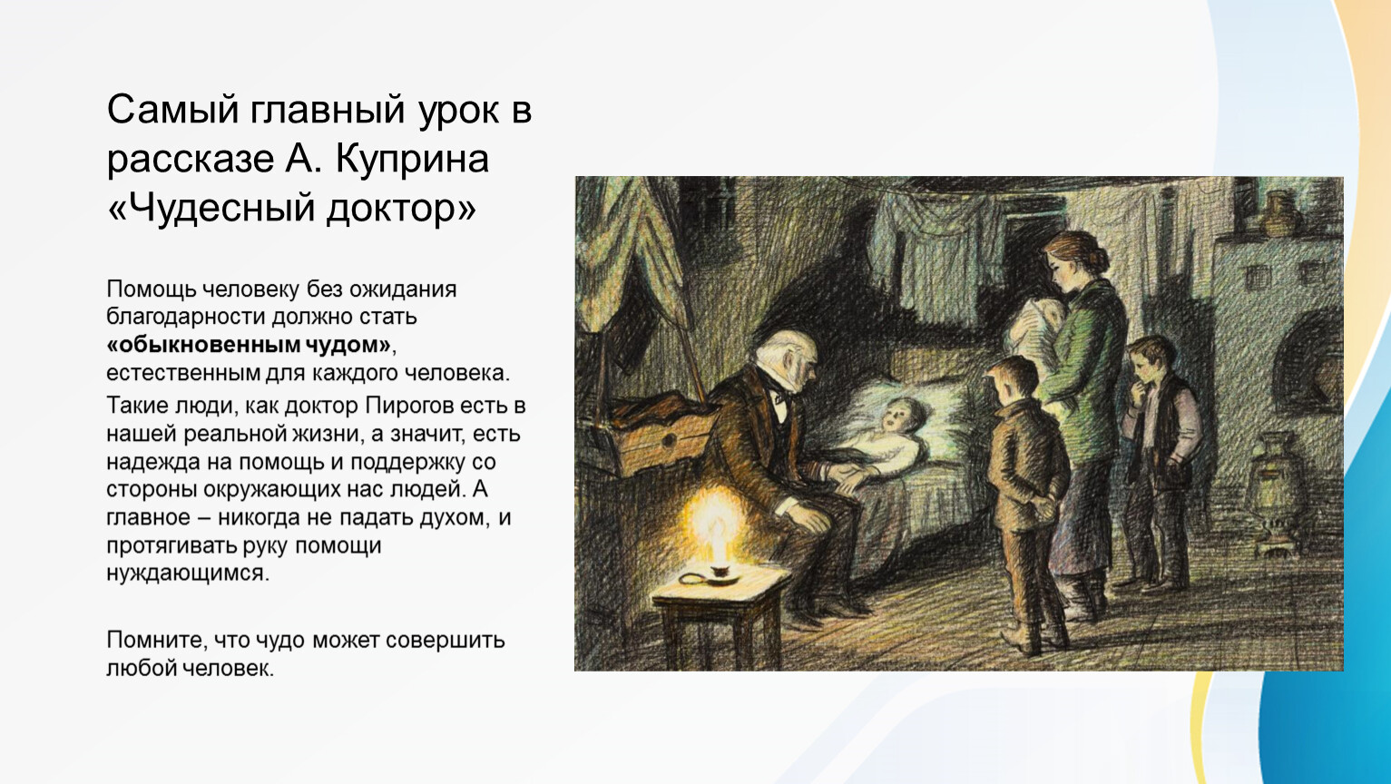 Самый главный урок в рассказе А. Куприна «Чудесный доктор»