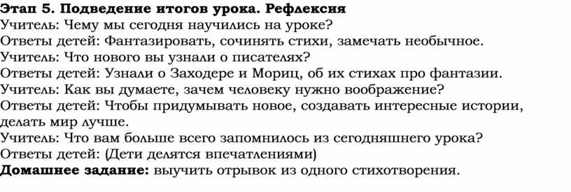 Этап 5. Подведение итогов урока. Рефлексия