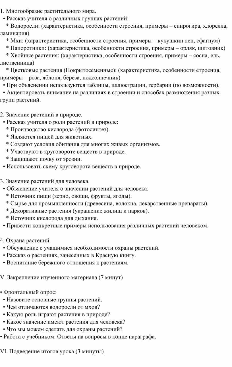 растительного мира и его значении в природе и жизни человека.