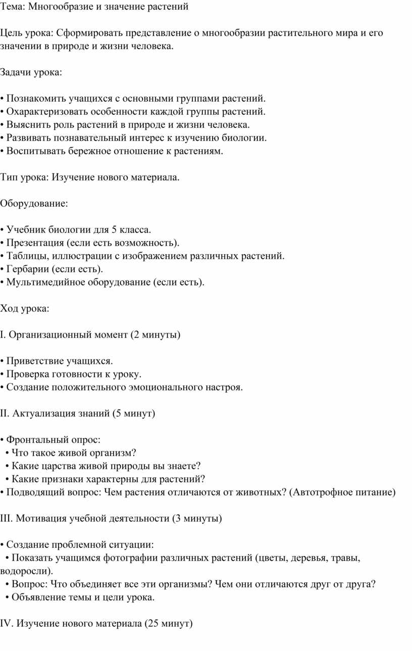 Тема: Многообразие и значение растений
