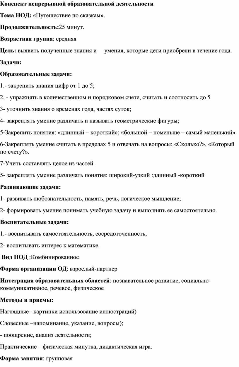 Конспект непрерывной образовательной деятельности