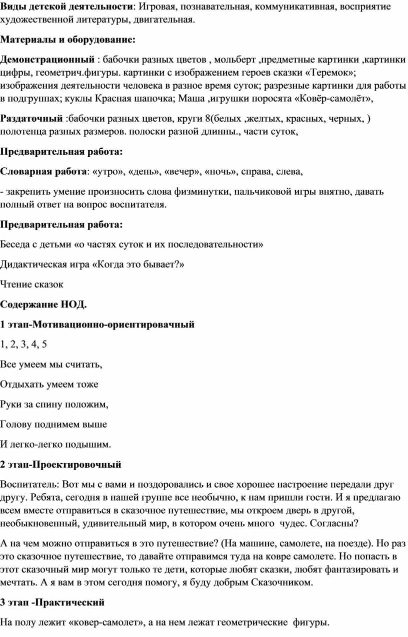 Содержание НОД.