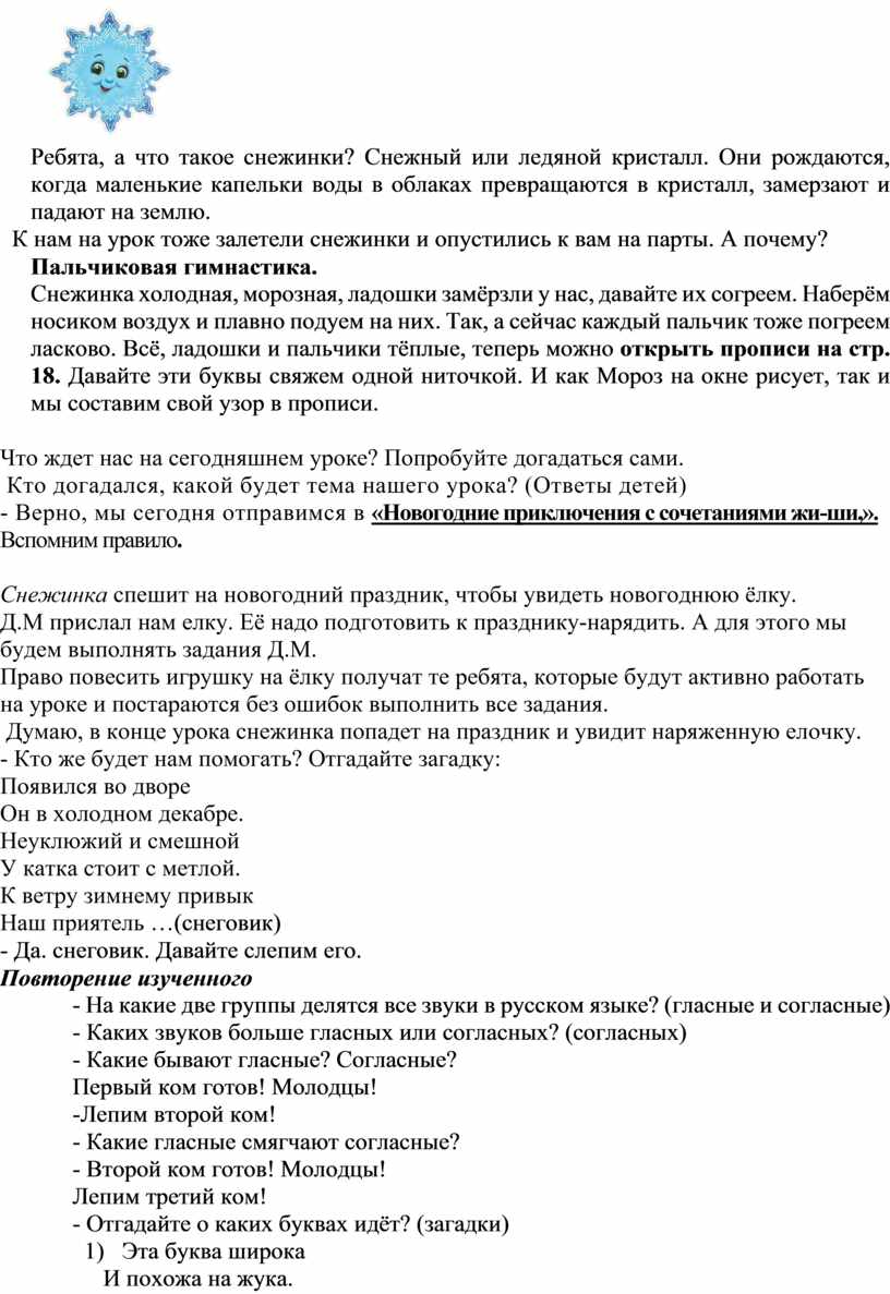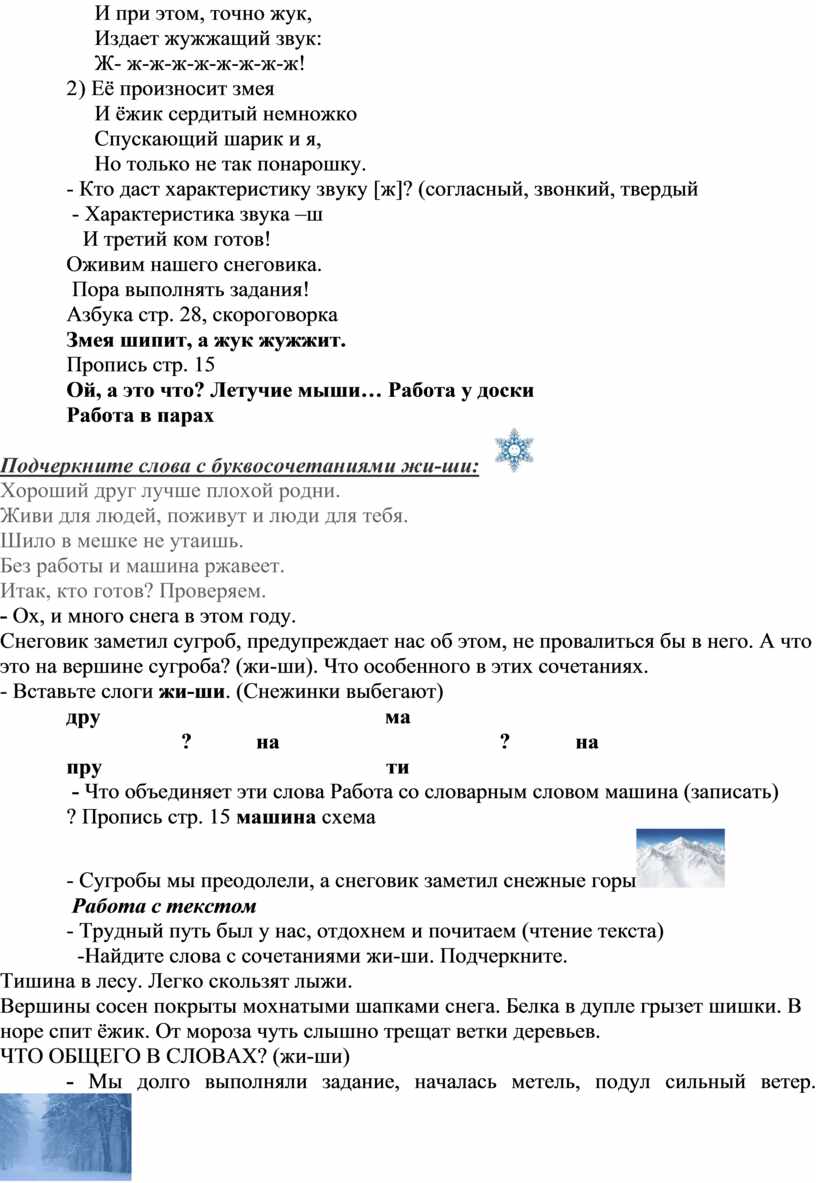 Снеговик заметил сугроб, предупреждает нас об этом, не провалиться бы в него. А что это на вершине сугроба? (жи-ши). Что особенного в этих сочетаниях.