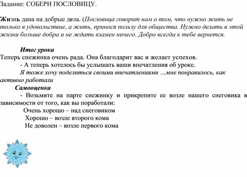 - Возьмите на парте снежинку и прикрепите ее возле нашего снеговика в зависимости от того, как вы поработали: