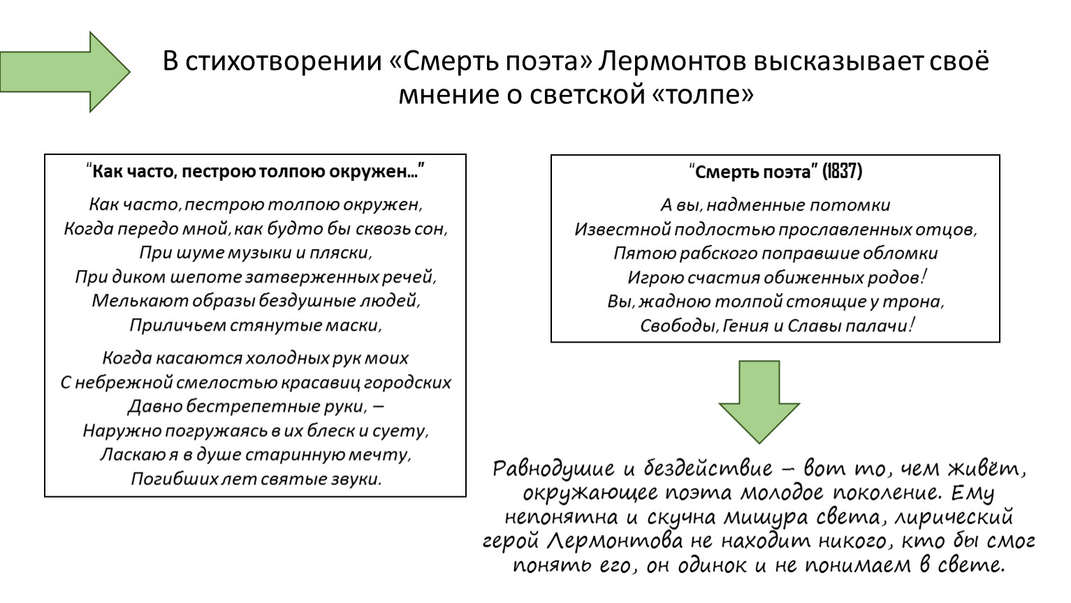 В стихотворении «Смерть поэта» Лермонтов высказывает своё мнение о светской «толпе»
