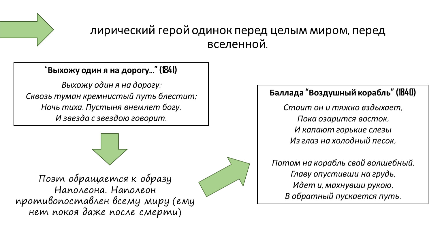 лирический герой одинок перед целым миром, перед вселенной.