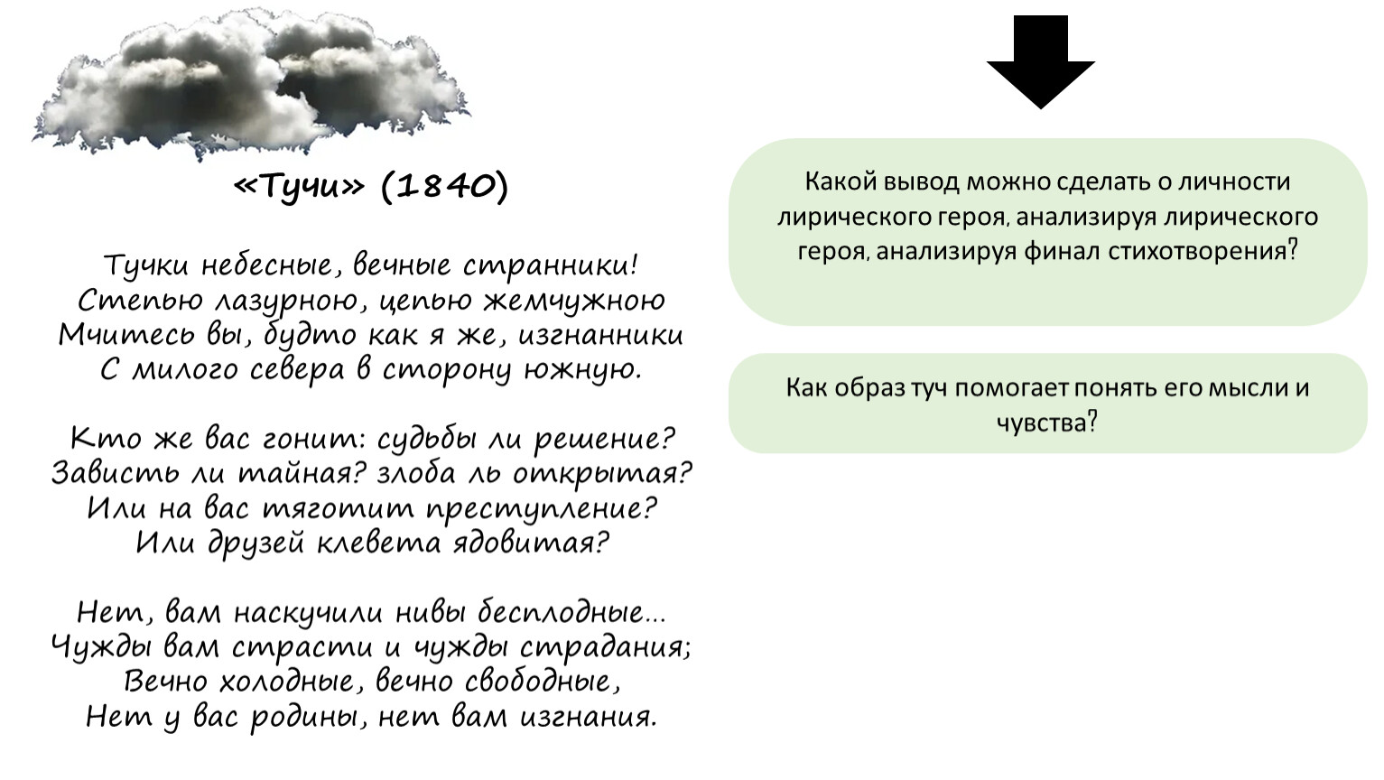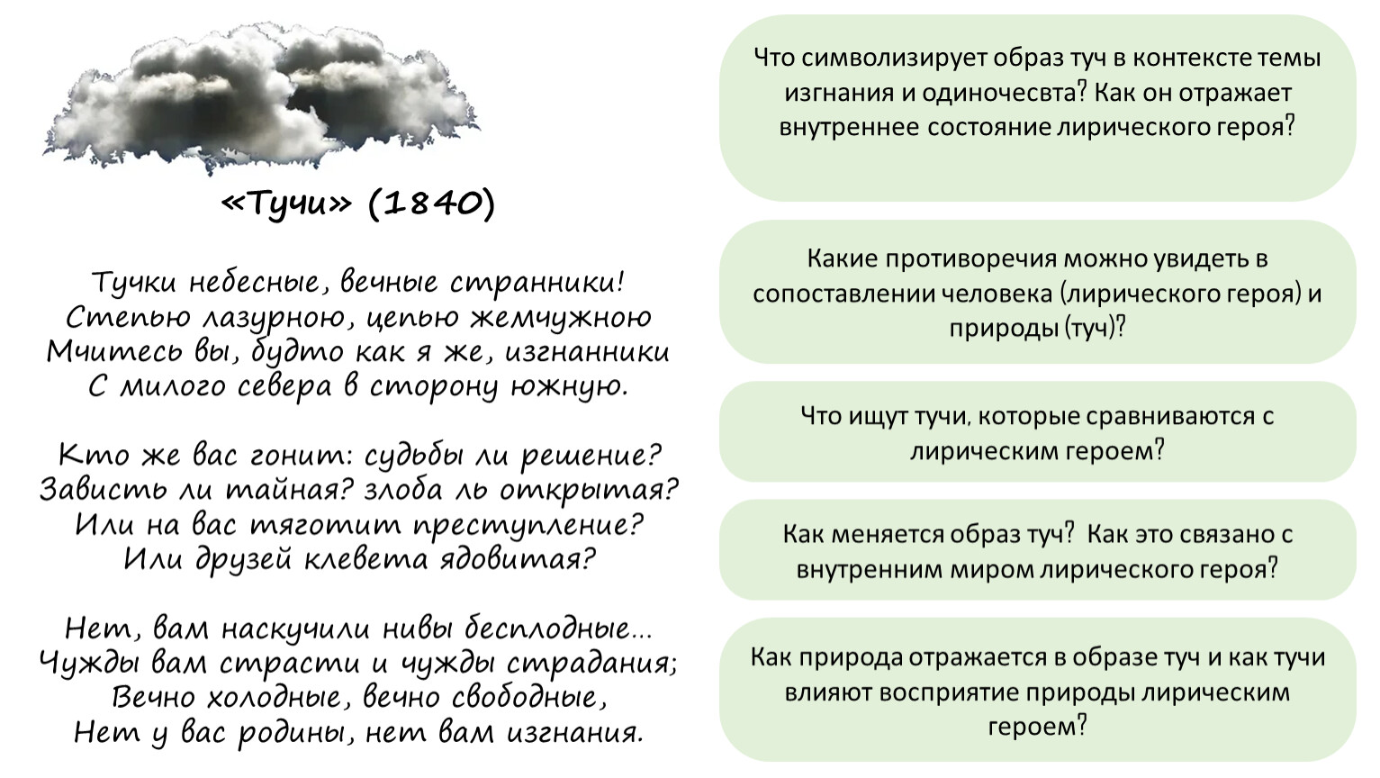 Как природа отражается в образе туч и как тучи влияют восприятие природы лирическим героем?