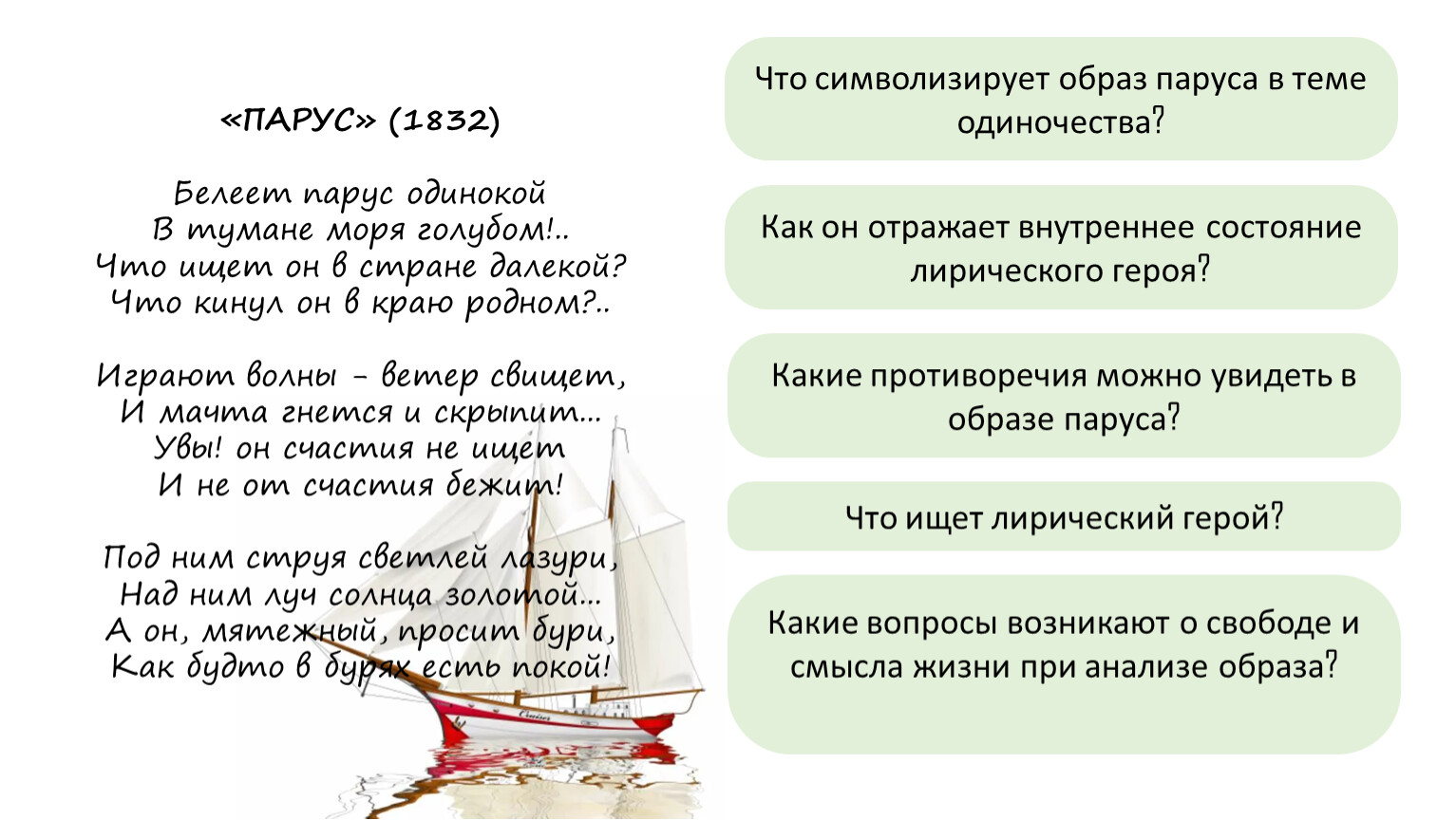 Что символизирует образ паруса в теме одиночества?