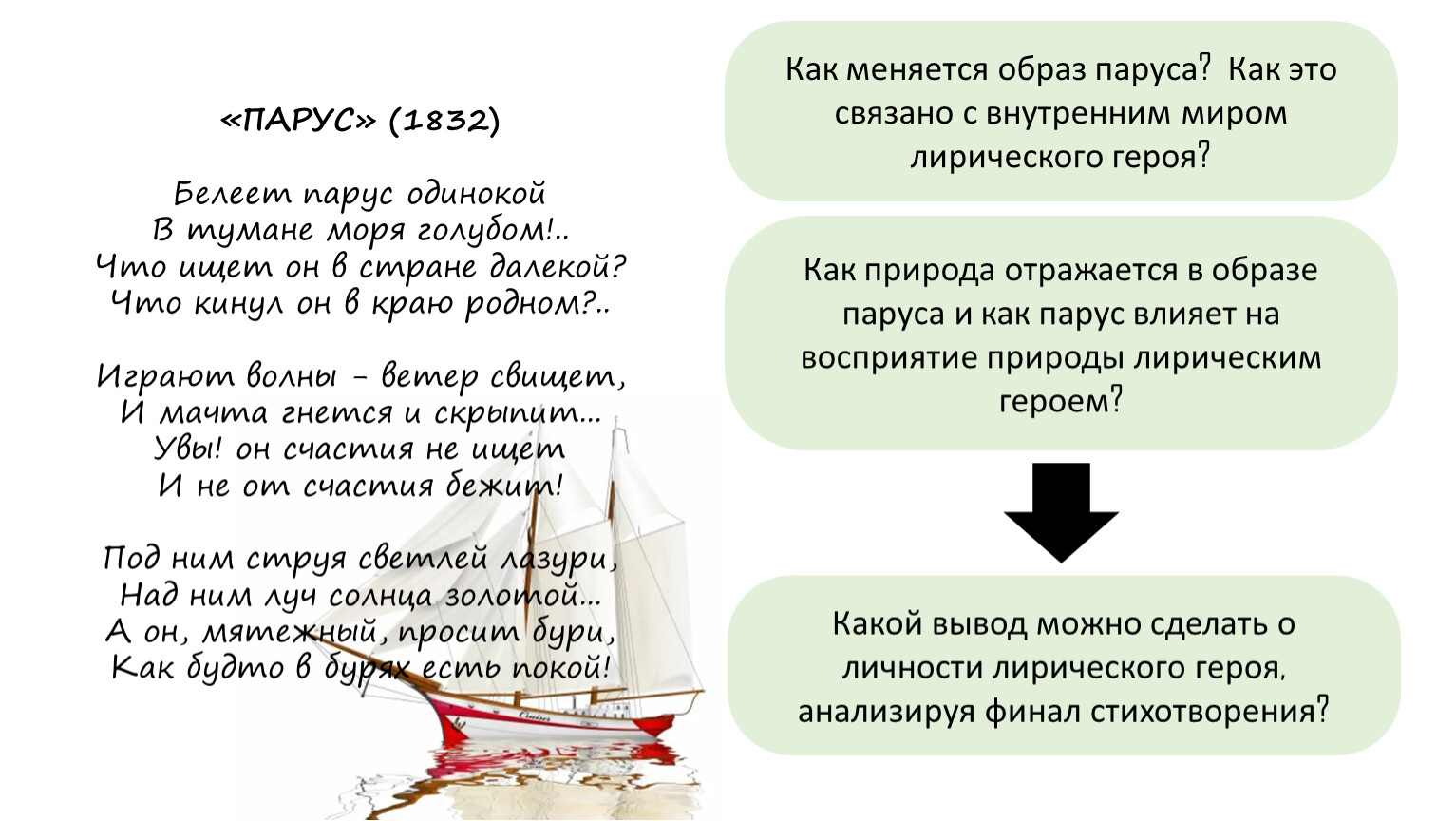 Как меняется образ паруса? Как это связано с внутренним миром лирического героя?