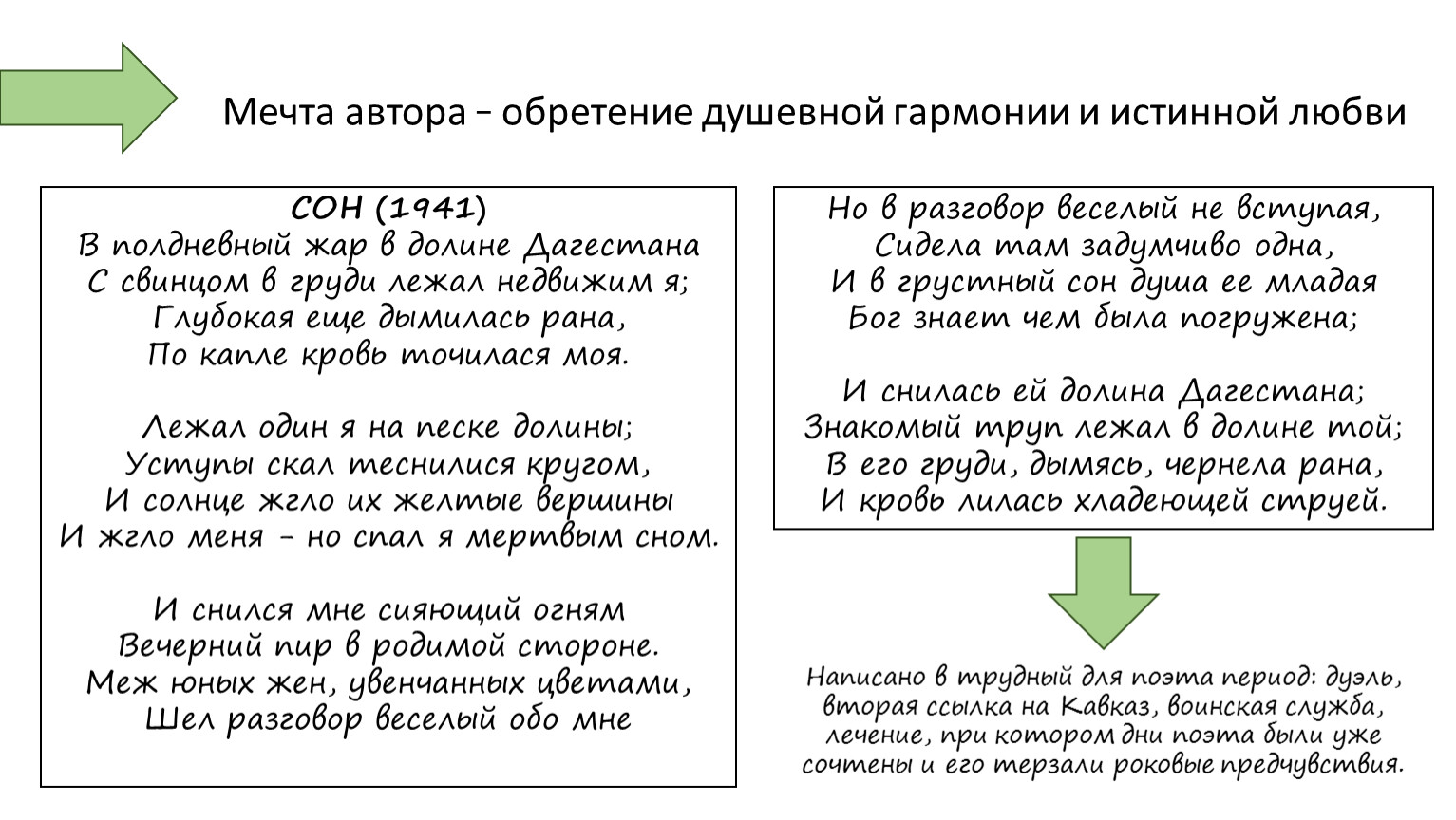 Написано в трудный для поэта период: дуэль, вторая ссылка на Кавказ, воинская служба, лечение, при котором дни поэта были уже сочтены и его терзали роковые предчувствия.
