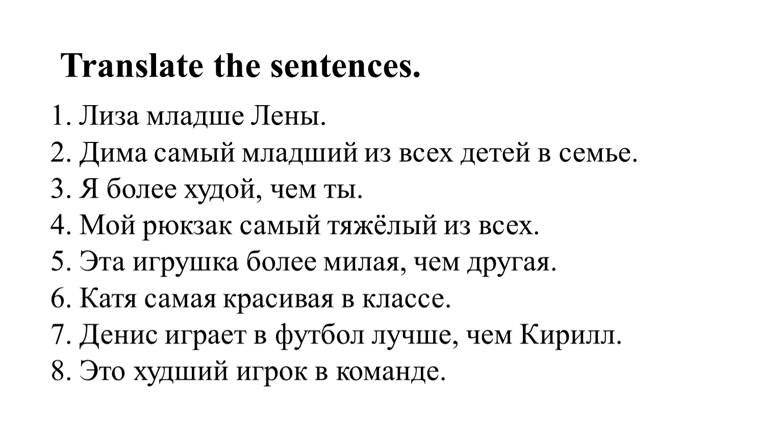 7. Денис играет в футбол лучше, чем Кирилл.