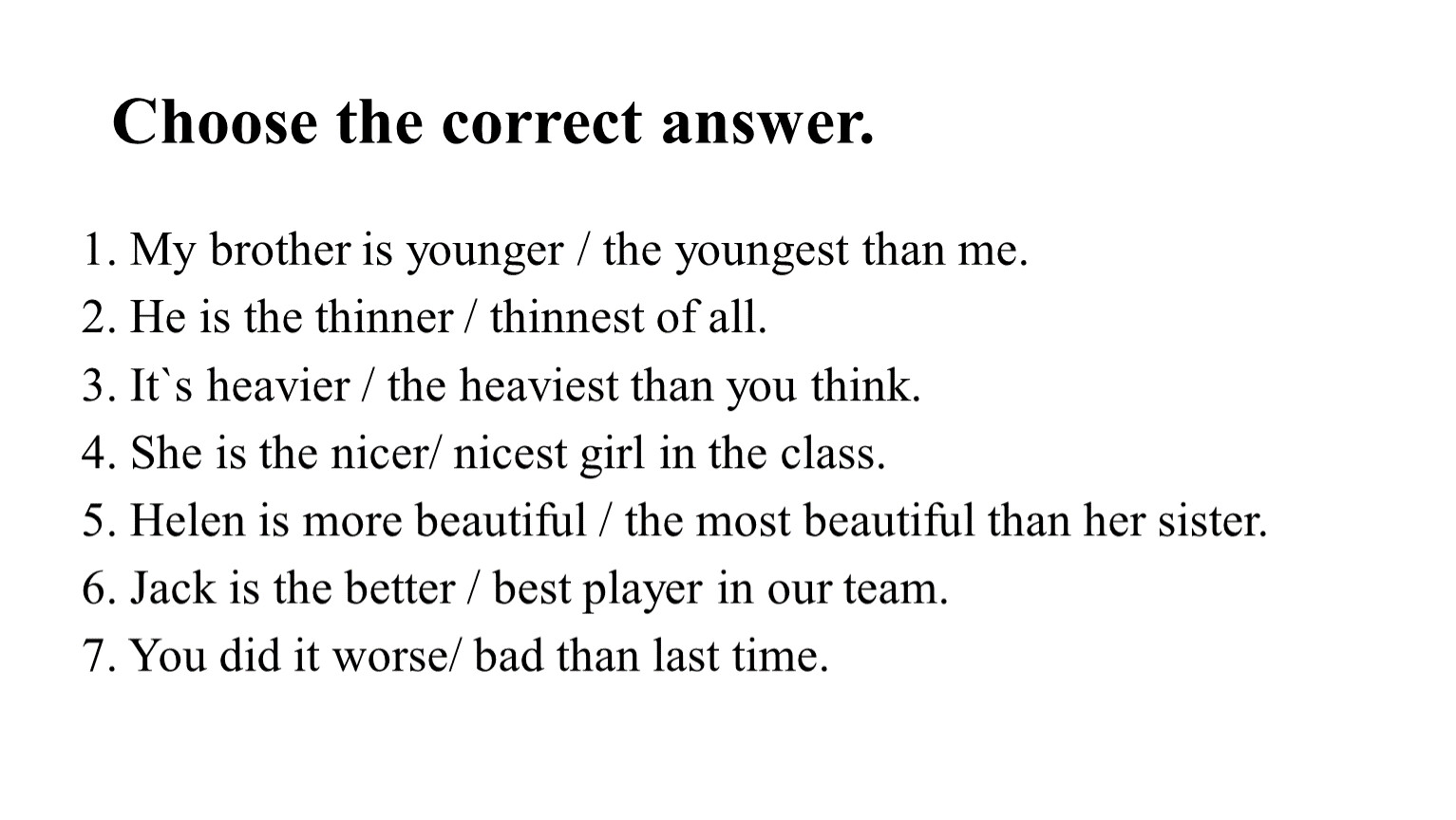 5. Helen is more beautiful / the most beautiful than her sister.