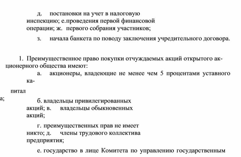 1. Акционерное общество считается созданным с момента: а. заключения учредительного договора;