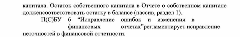 П(С)БУ 6 “Исправление ошибок и изменения в финансовых отчетах” регламентирует исправление неточностей в финансовой отчетности.