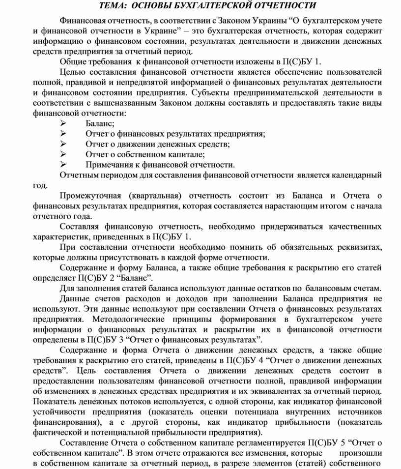 ТЕМА: ОСНОВЫ БУХГАЛТЕРСКОЙ ОТЧЕТНОСТИ