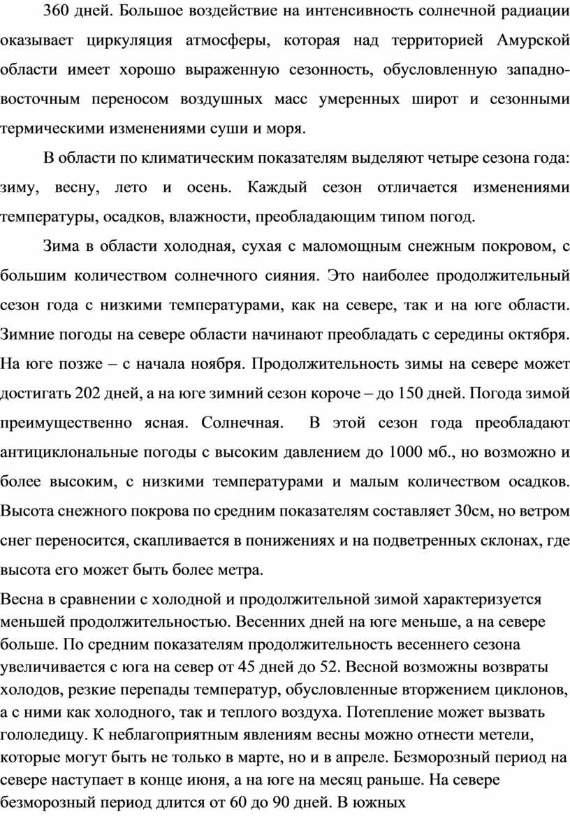 ХАРАКТЕРИСТИКА КЛИМАТА АМУРСКОЙ ОБЛАСТИ.